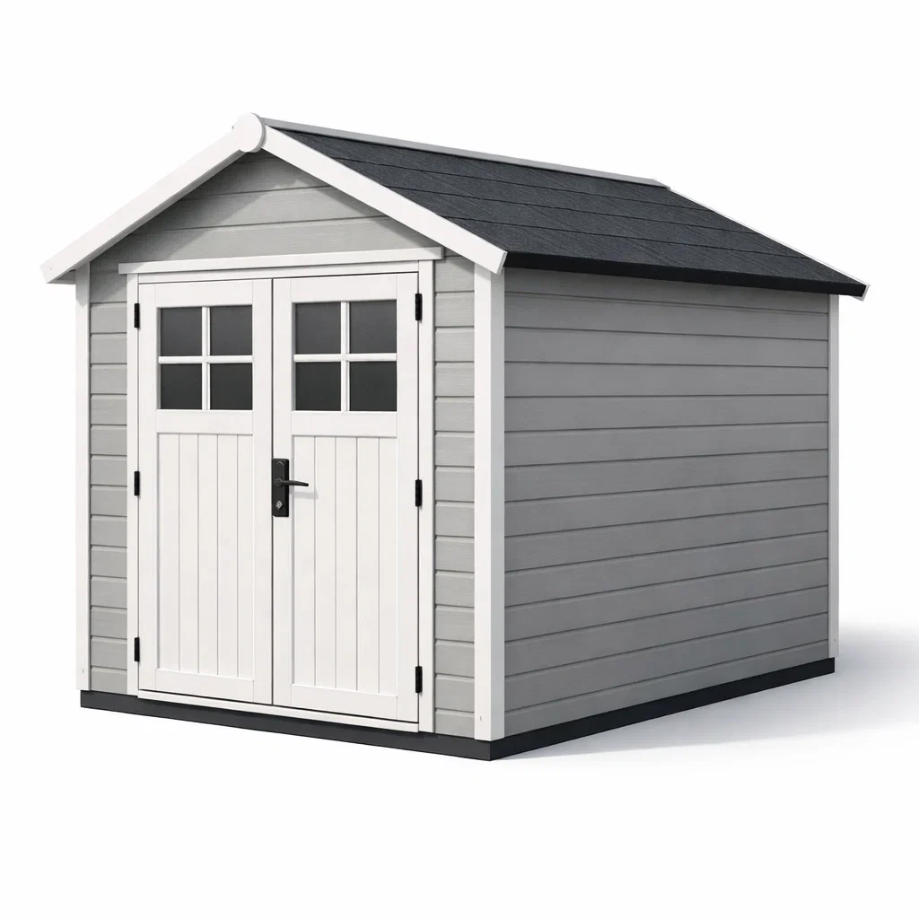 Ripostiglio da giardino in legno composito grigio con porta doppia